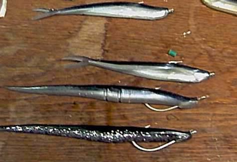 I have found the larger soft plastic baits to be extremely effective on the river run stripers that are targeting herring/alewives. Their main downfall is durability. The bait tends to slide down the hook in the cast and is mangled by fish. The following method of rigging was explained to me by the owner of one of the shoreline tackle shops. The method results in a durable bait that is a pleasure to use and saves consider expense if you go through a lot of them.
