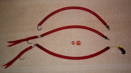 After stopping at every tackle shop from Connecticut to Maine, I finally decided to start making my own tubes. Finding the appropriate tubing can be a trial for sure. I have found some on Ebay, picked some up at the sportsman shows, and even bought clear tubing and dyed it scarlet red.